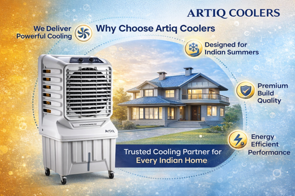 With a focus on performance and efficiency, Artiq Coolers delivers high-quality cooling solutions designed for Indian summers. Our products are built using advanced technology to ensure powerful airflow, low energy consumption, and long-lasting durability. Whether for home or commercial use, Artiq stands for reliability, innovation, and customer satisfaction.